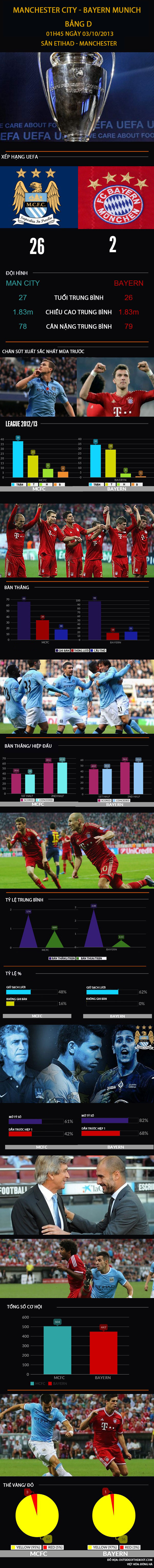 Giáp. Do đó trận đấu rạng sáng tương lai có ý nghĩa quyết định cho ngôi đầu của bảng D. Bayern chỉ chịu đứng thứ 2 sau đội đầu bảng Dortmund vì chỉ số phụ. Chính điều này khiến Mancini bị thải hồi và Pellegrini được chọn thay thế. Một tí lợi thế cho Pep khi Pellegrini chưa bao giờ thắng một trận nào khi đối đầu với ông. Đồ họa trận đấu: T.
